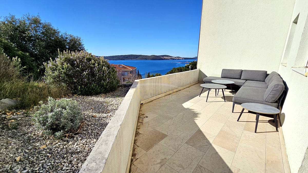 Trzypokojowe mieszkanie w Okrugu Gornjem/Čiovo z dużym tarasem, garażem i widokiem na morze