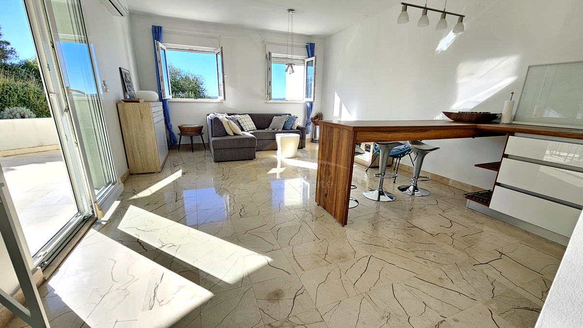 - NA SPRZEDAŻ: W pełni umeblowane mieszkanie z 2 sypialniami, widokiem na morze i dużym tarasem – Trogir, Balan