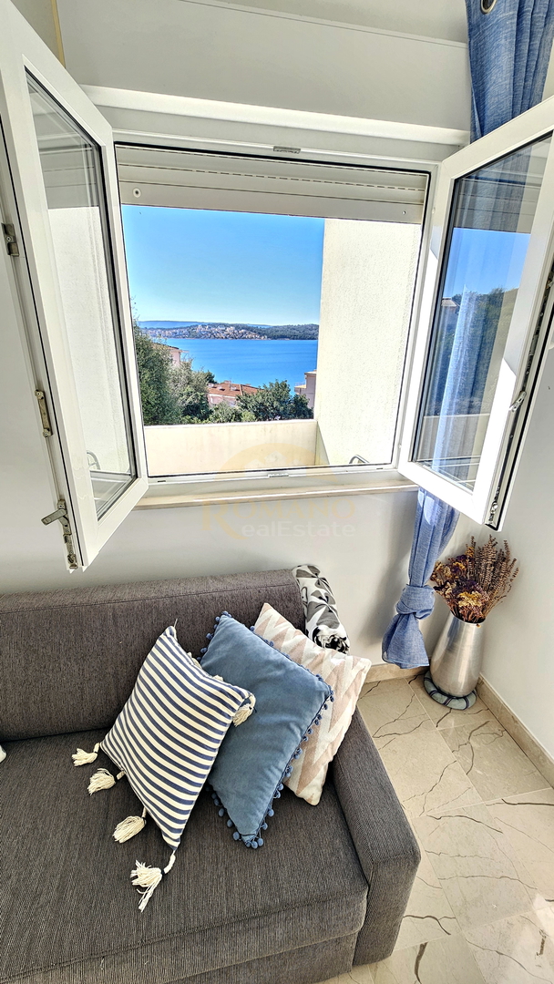 NA SPRZEDAŻ: W pełni umeblowane mieszkanie z 2 sypialniami, widokiem na morze i dużym tarasem – Trogir, Balan
