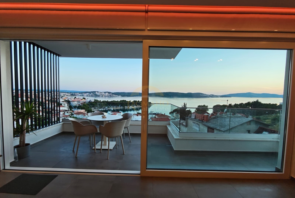 Three-bedroom apartment in Okrug Gornji/Čiovo with large terrace, garage, and sea view